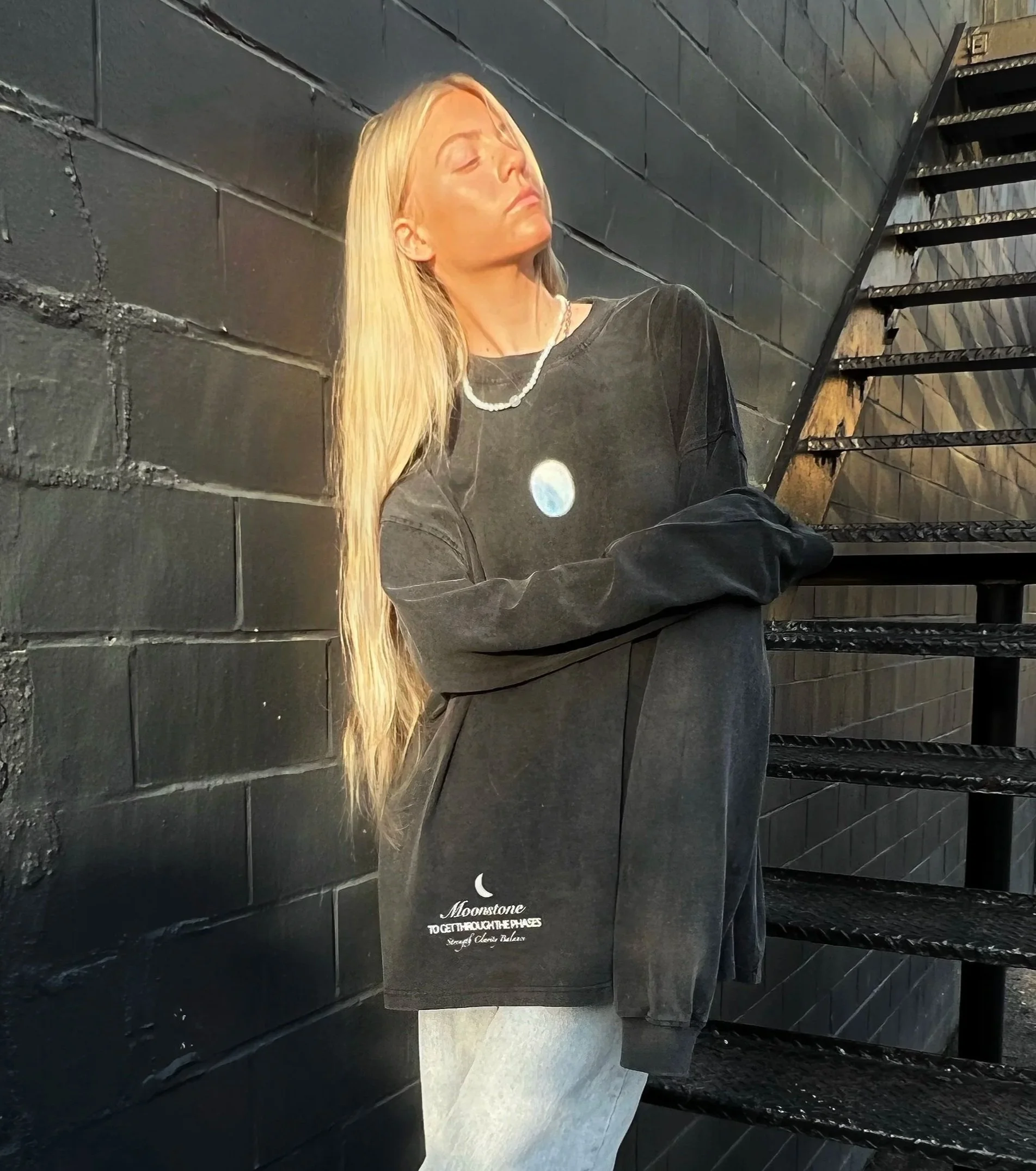 After a few clothing drops, it was 2023 when I, once again, thought about the crystal hoodie. I envisioned exactly how I wanted it to look, then started drawing, picking colors, and ordering samples. This triggered a continuous array of ideas that I can’t wait to share with you. The original hoodie design isn’t based on Moonstone and will be part of a different Stones collection. After I designed it, I started on the Moonstone hoodie....